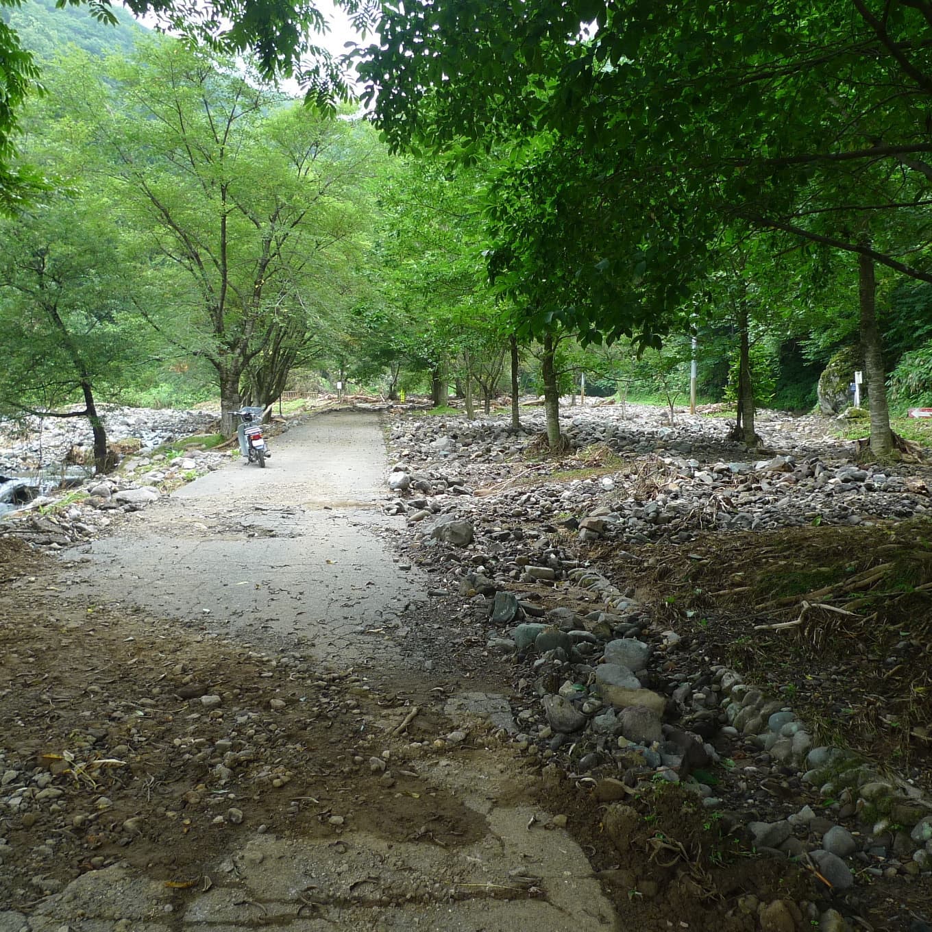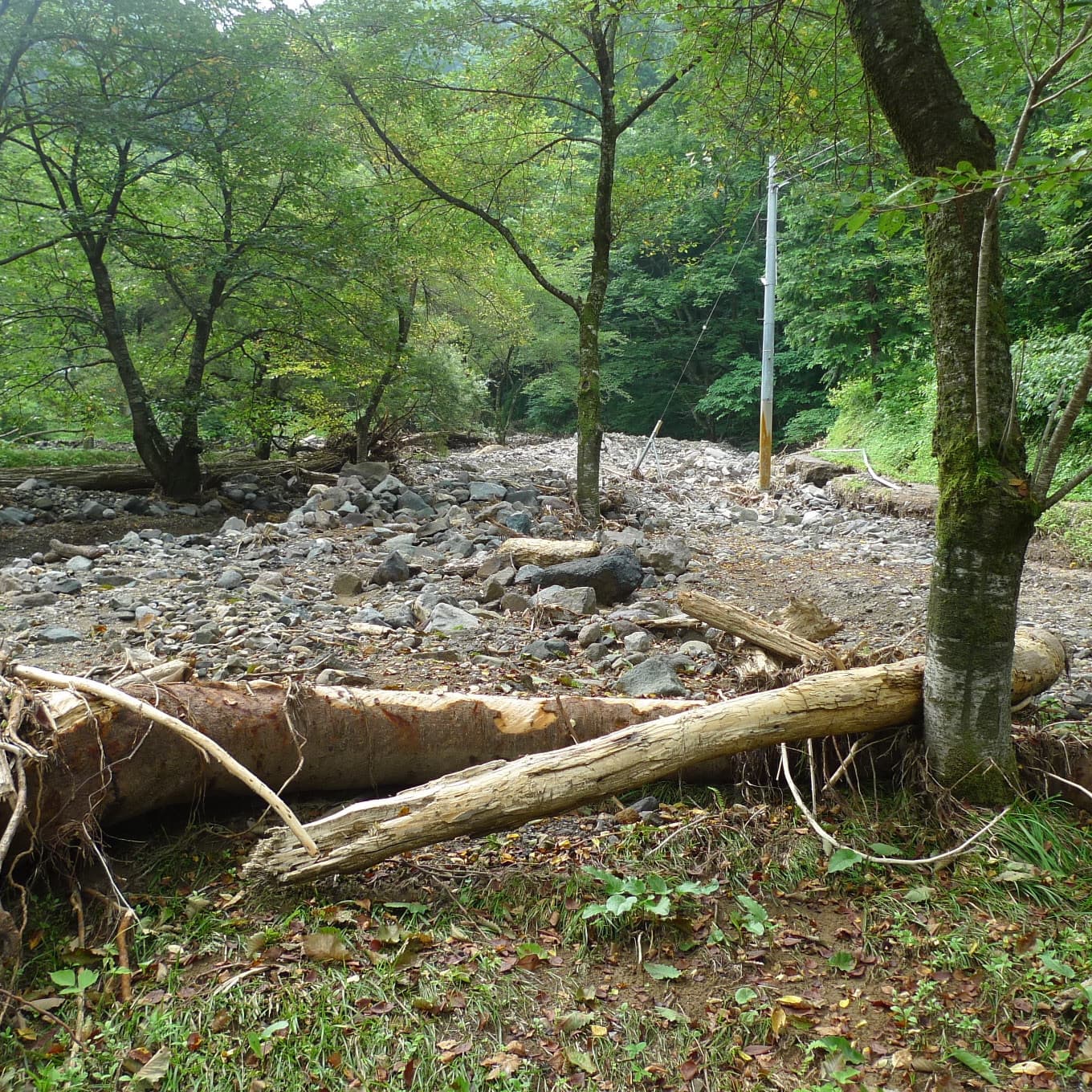 令和6年7月25日の豪雨災害による玉簾の滝参道や滝周辺の当時の災害状況です。