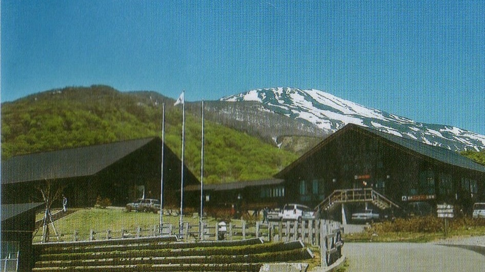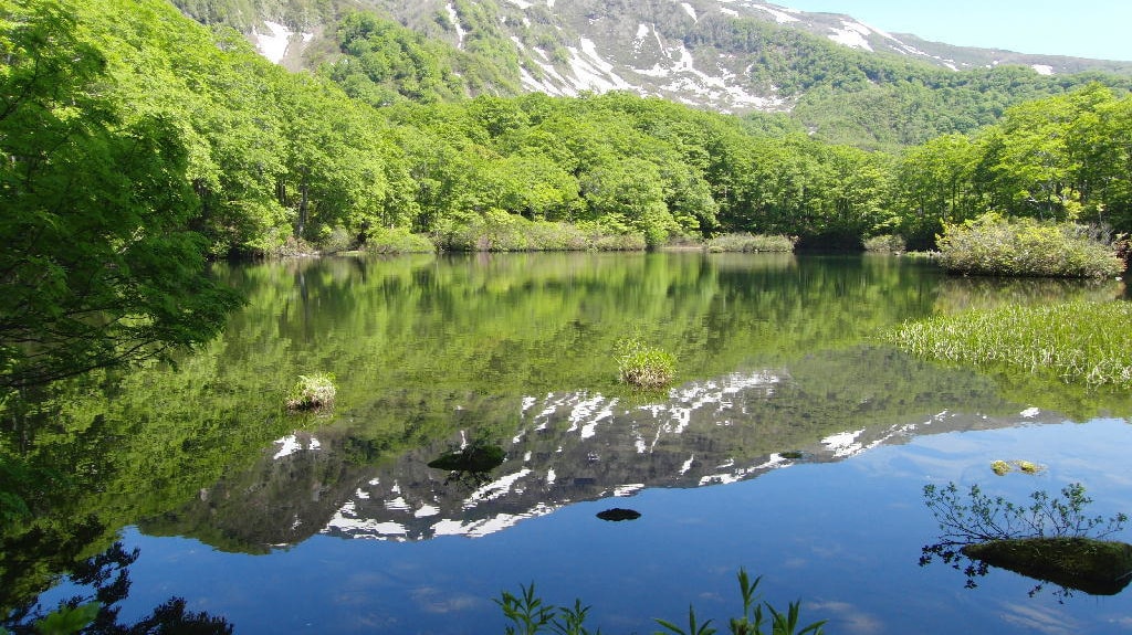 鳥海山湯の台登山口への車道の途中に見晴らしスペースがあり、四季の絶景に見とれる。